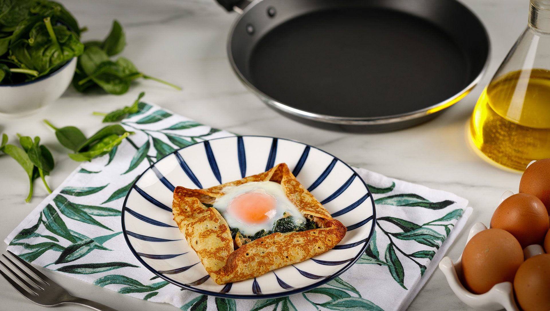 Galette bretona de espinacas, atún y huevo