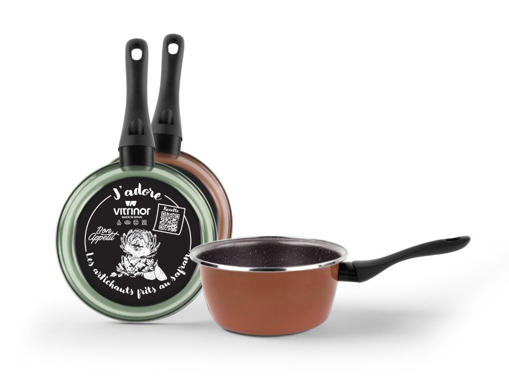 La cuisson se fait dans une casserole Vitrinor de 20 cm, idéale pour frire par petites quantités et obtenir un résultat uniforme.